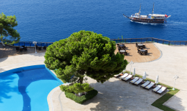 HAVUZLAR: Büyük Açık Havuz 155 cm Derinlik, 170 m2 Kapalı Havuz 140 cm Derinlik, 48 m2 ÇOCUK HAVUZLARI Açık çocuk Havuzu 40 cm Derinlik, 14 m2 Kapalı Çocuk Havuzu 40 cm Derinlik, 5 m2 (Şezlong, plaj havlusu ve şemsiye ücretsizdir)