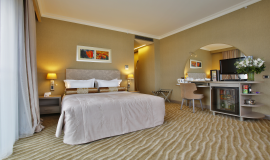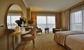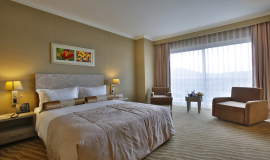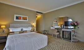 • Kablolu-interaktif TV, kablolu - kablosuz sınırsız internet, Dijital Elektronik Kasa (dizüstü bilgisayarınızın sığacağı büyüklükte, içerisinde şarj edebileceğiniz ünite ile), alkollü ve alkolsüz içeceklerin bulunduğu Mini Bar (ekstra), saç kurutma makinesi, talep doğrultusunda yatak açma servisi, bornoz, klima, direkt telefon, İnce Ekran HD Televizyon, uyandırma servisi, su ısıtıcısı, çay-kahve seti ve 24 saat oda servisi mevcuttur.