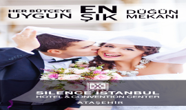 Silence İstanbul Otel& Kongre Merkezi; gün ışığı alan 7m tavan yüksekliğinde ve 1500 m2 genişliğinde 3’e bölünebilen ana salonunda veya 900 m2’lik alternatif salonunda eksiksiz ve şık bir düğünün tüm detaylarını düğün sahipleri için özenle planlıyor.